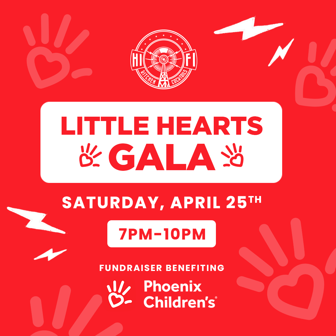 The Little Hearts Gala is coming to Hi Fi Kitchen & Cocktails on Saturday, April 25th from 7–10 PM, and you're invited to a meaningful and unforgettable evening. Hosted by Evening Entertainment Group, this exclusive Scottsdale charity event directly benefits Phoenix Children's Hospital — with 100% of all ticket sales donated to support their life‑changing work.